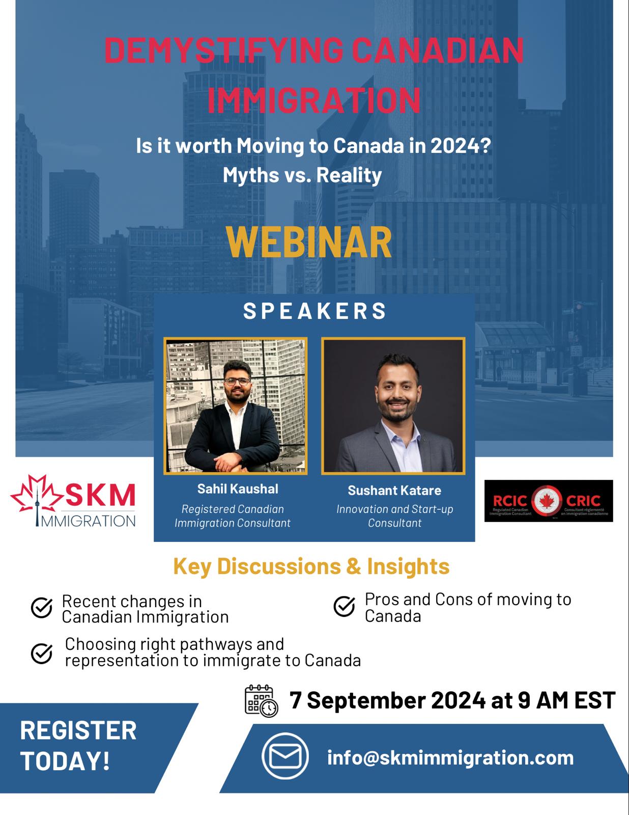 Are you planning to immigrate to Canada? Don’t miss our upcoming webinar designed to provide you with the latest updates on Canadian immigration policies, various pathways to immigration, and the comprehensive services we offer to support your journey.